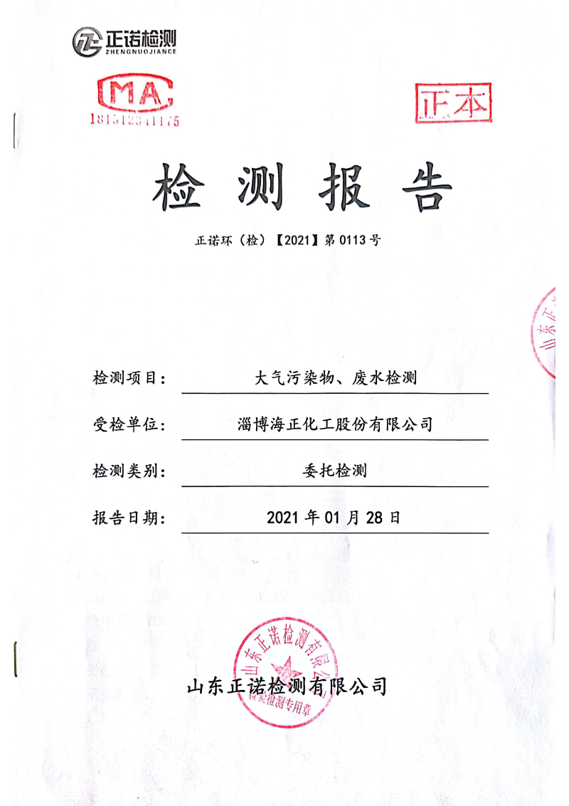 2021年1月大氣污染物體、廢水檢測(cè)報(bào)告